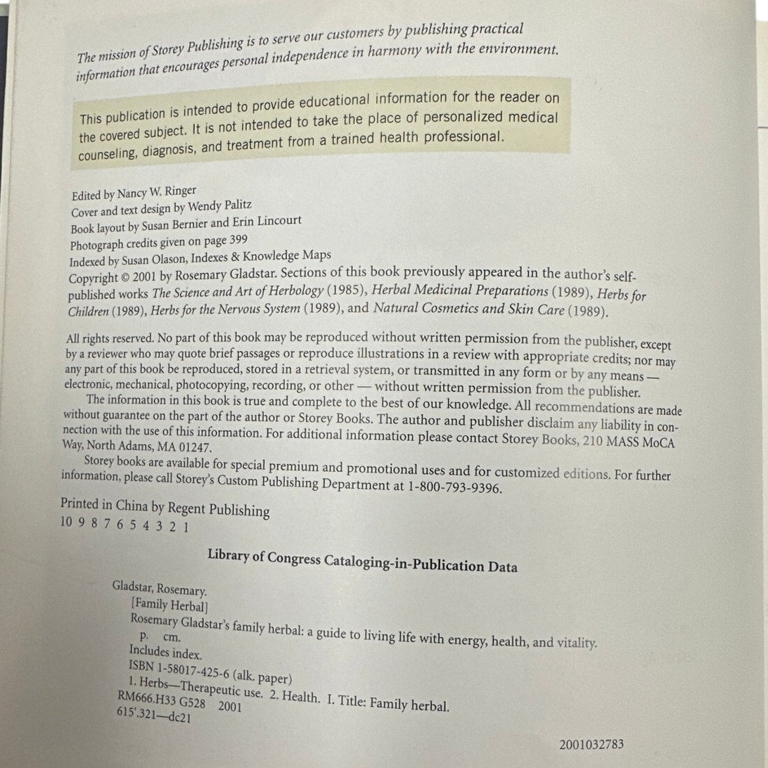 - Hard cover. 2001. Excellent pre-owned condition w/ dust jacket. Considered the mother of modern herbalism, Gladstar shares her knowledge and enthusiasm for herbs in this easy-to-understand book with tried-and-true advice for health and energy.