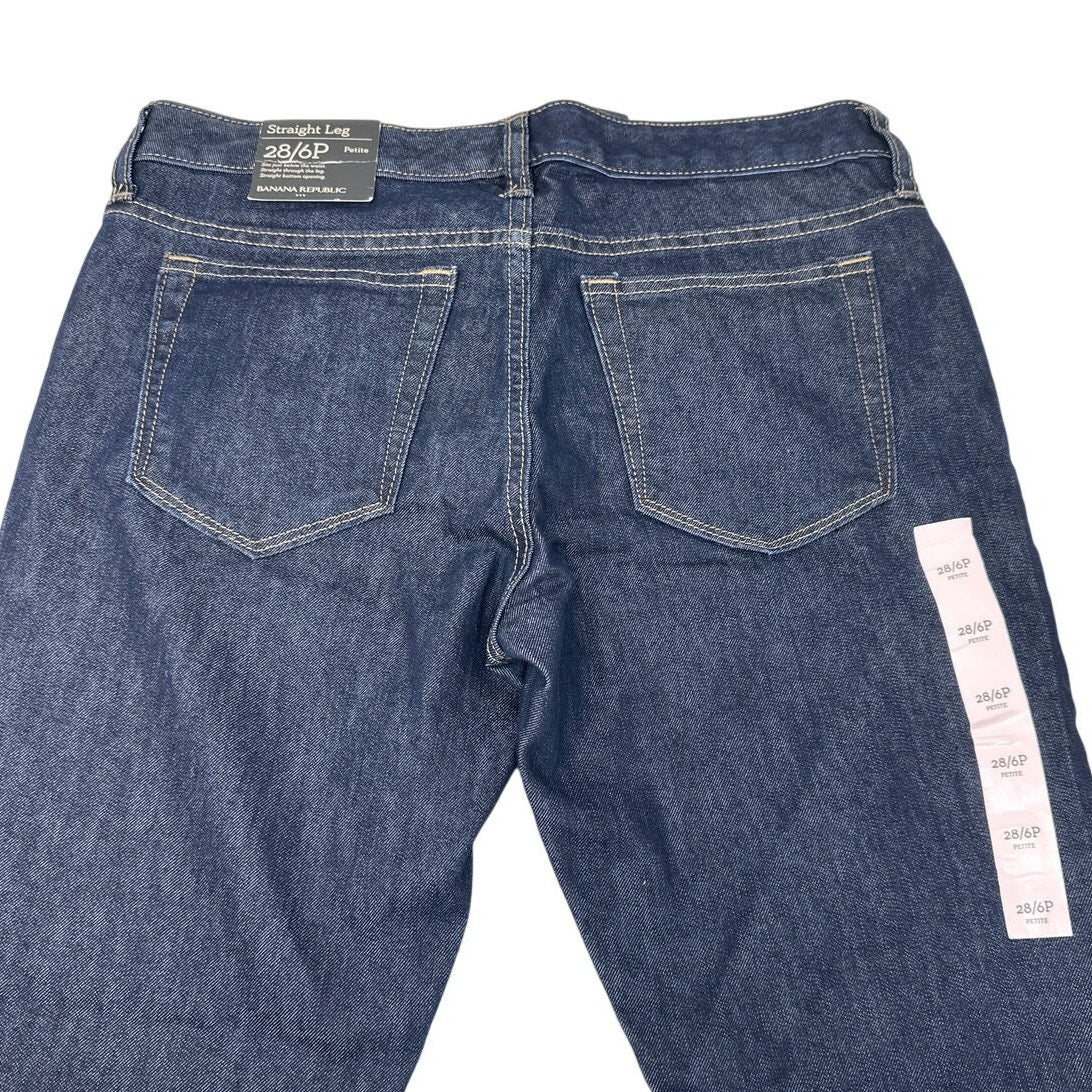 Classic and versatile Banana Republic dark wash jeans, brand new with tags. Style: straight leg. Size 28P – waist 38”, inseam 28”. Original retail price: $59.99. Flattering mid-rise fit with minimal fading and clean lines—perfect for dressing up or down.