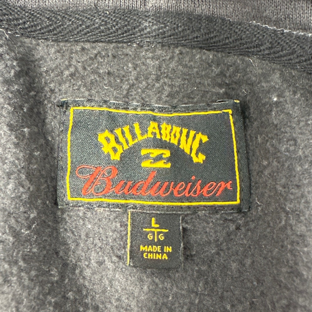 This Billabong x Budweiser Tie-Dye Hoodie is a rare find! The unique tie-dye pattern and the iconic Budweiser logo make it a standout piece.