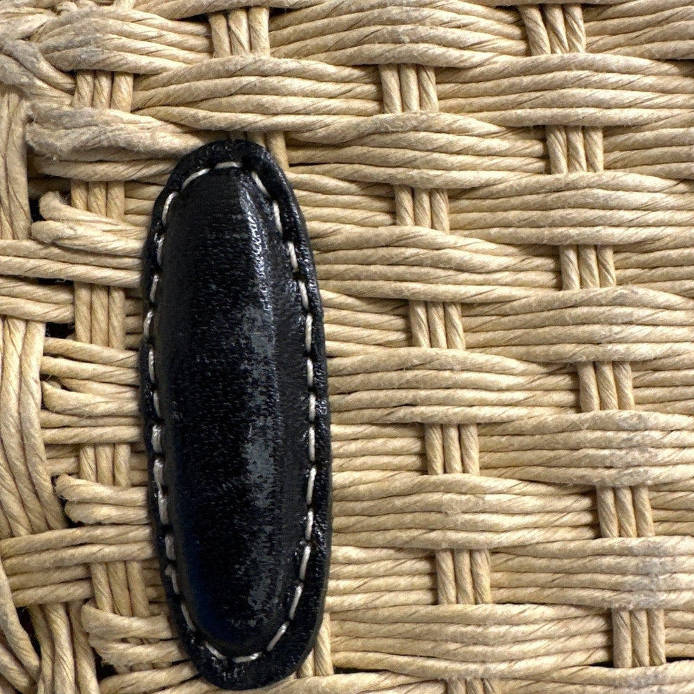 Very good preowned condition. Slight wear on bottom and barely noticeable coloring in straw. Authentic Brighton shoulder bag with a western flair. Woven straw body with black faux croc leather trim, braided straps, rhinestone-studded scrollwork, and signature Brighton interior lining. Magnetic snap closure, inner zip pocket, slip pocket, and key clasp. Eye-catching and great for year-round use!