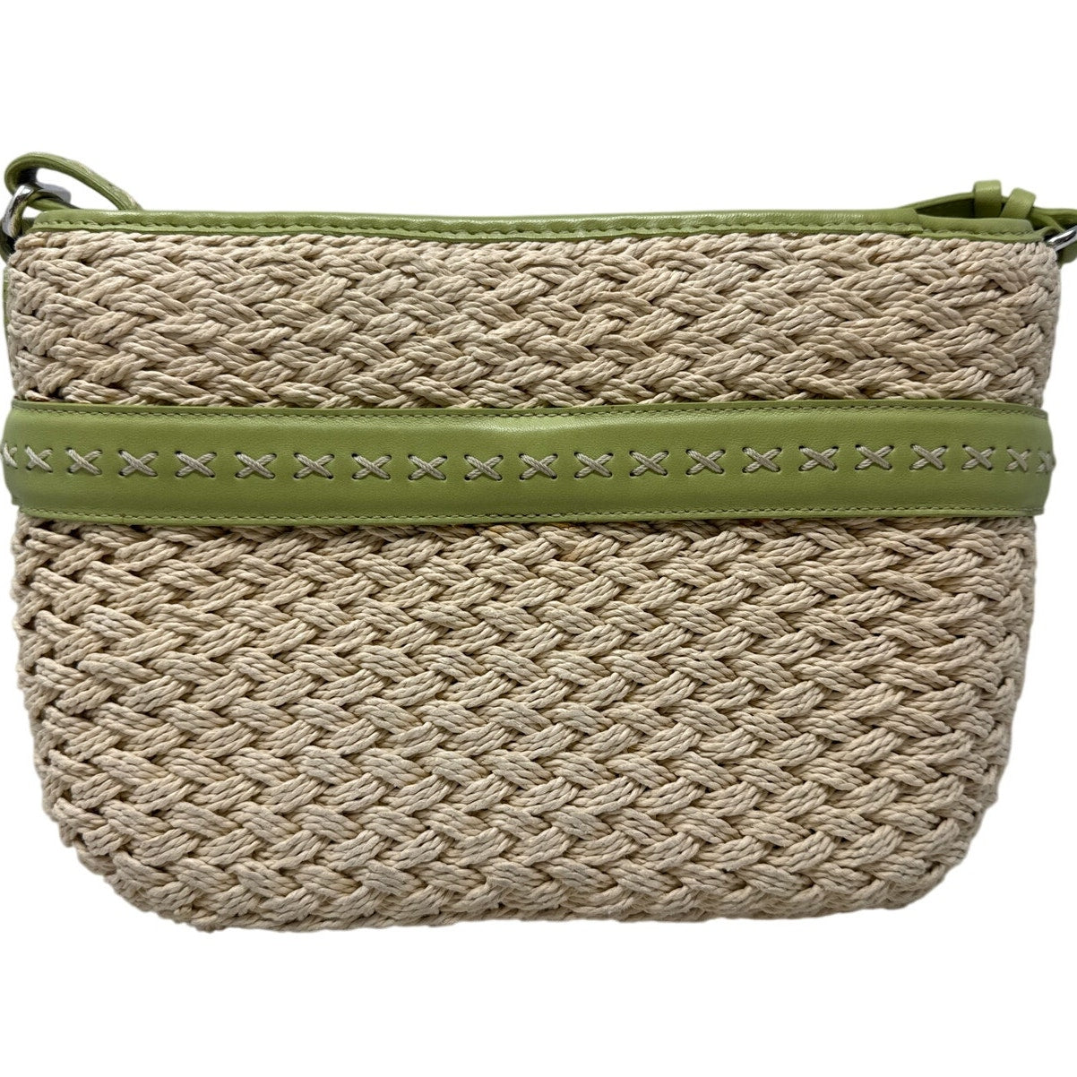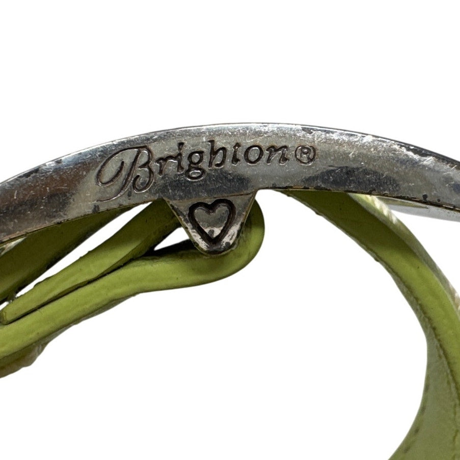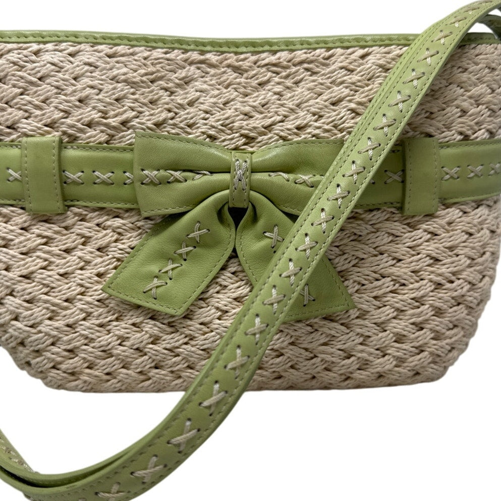 Preowned Brighton woven straw crossbody in lime green & cream. Silver heart charm, adjustable strap, magnetic flap. Good condition overall; wear on hardware and leather flap (see photos). Clean interior. Comes with original box. Cute spring/summer bag!