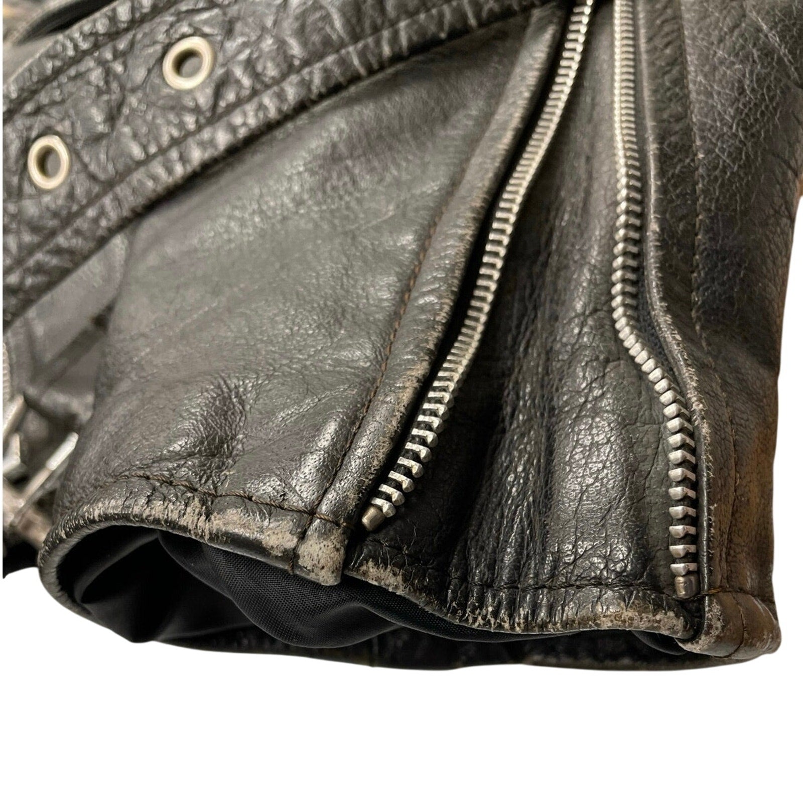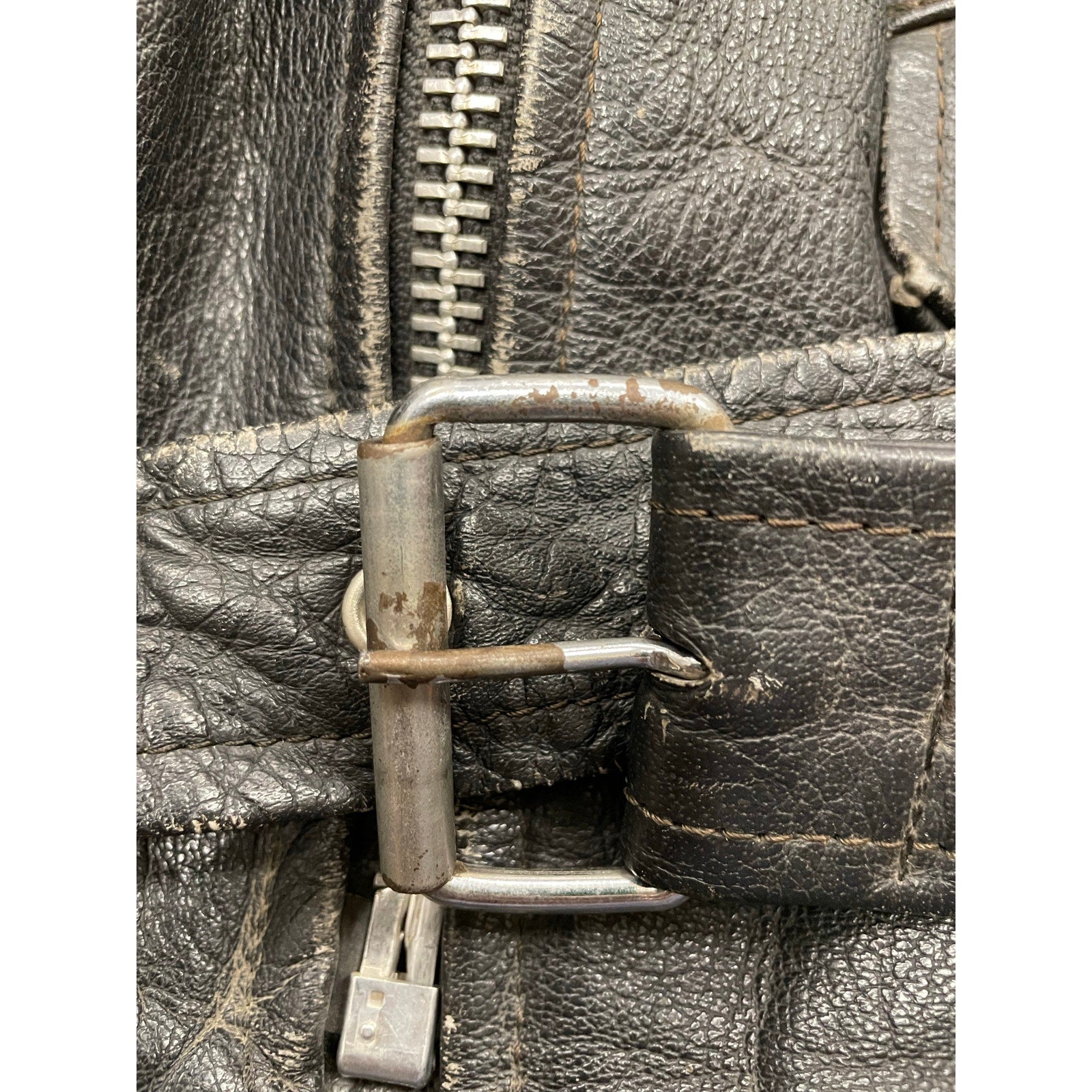 - A vintage First Genuine Leather Moto Jacket Size 44 black. Includes vintage Harley Davidson pins and patches. All zippers and snaps work.