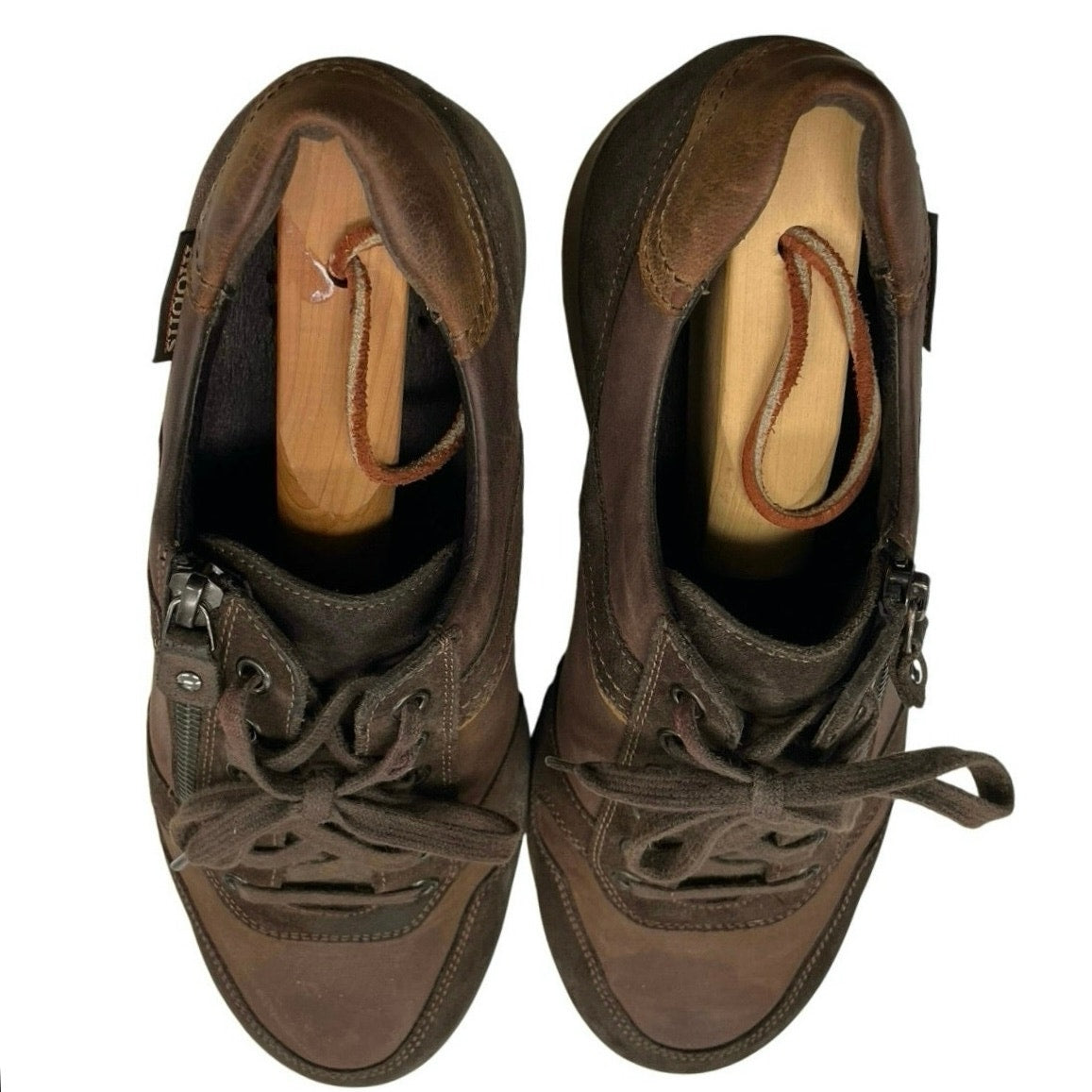 A pair of used Mobil’s genuine leather sneakers in coffee/nature brown size 8