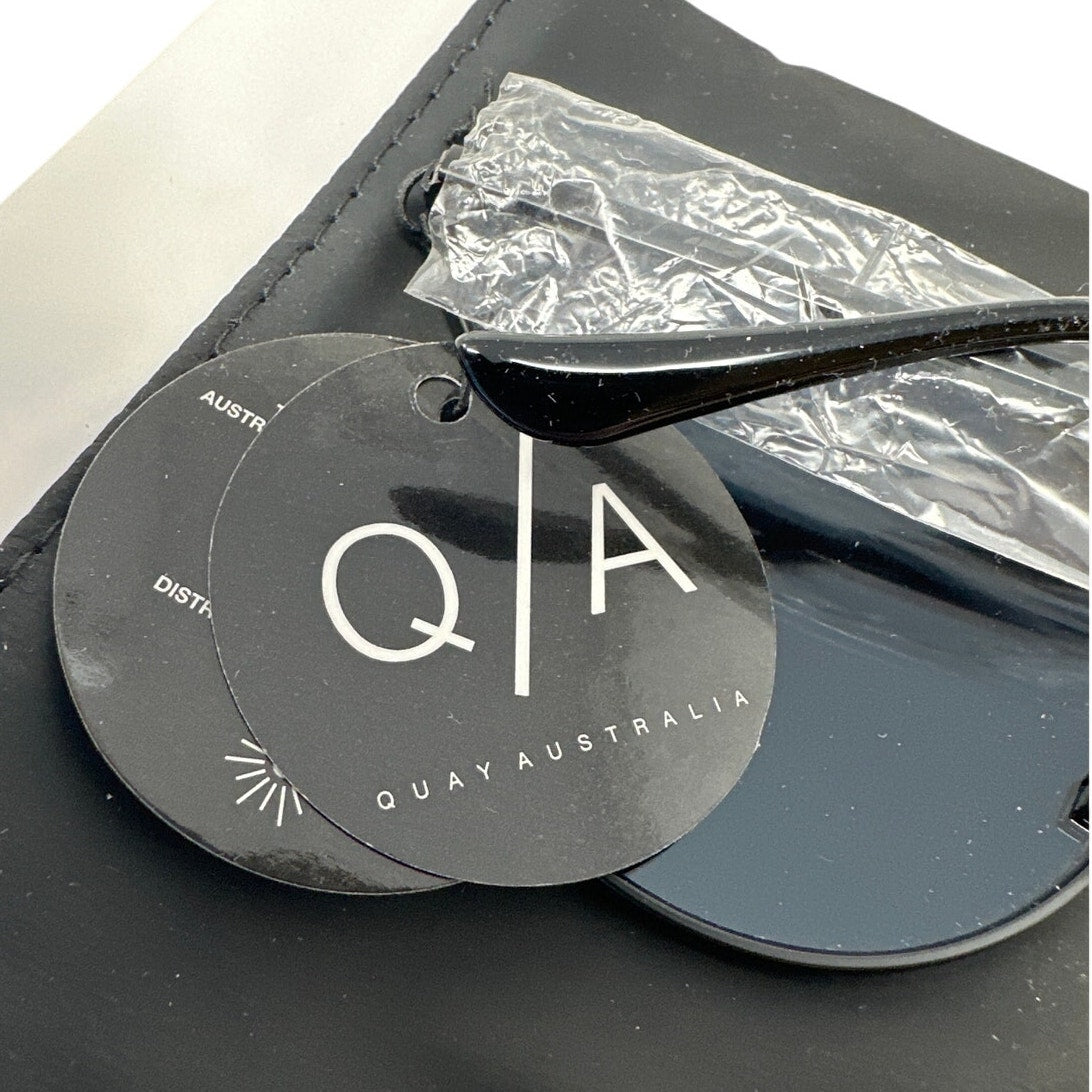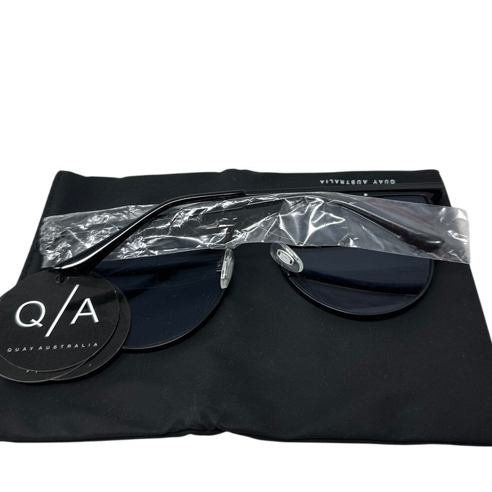 Stylish aviator/cat-eye blend with blue mirrored lenses, original tag still attached. Excellent new condition. Includes pouch.