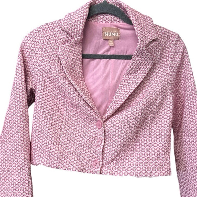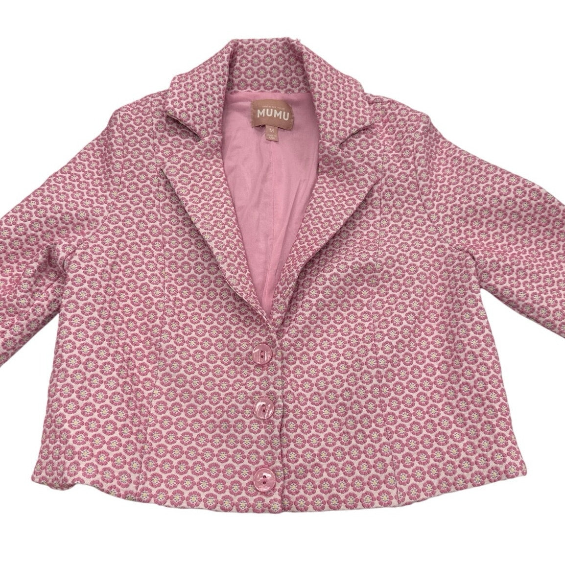 Add a pop of playful vintage charm to your wardrobe with this adorable pink floral blazer by Show Me Your Mumu.