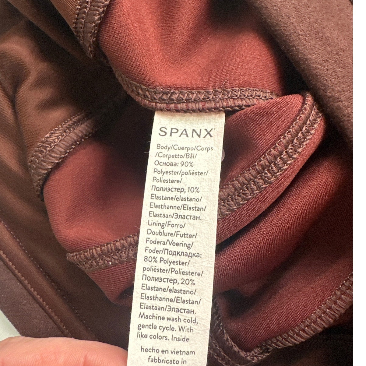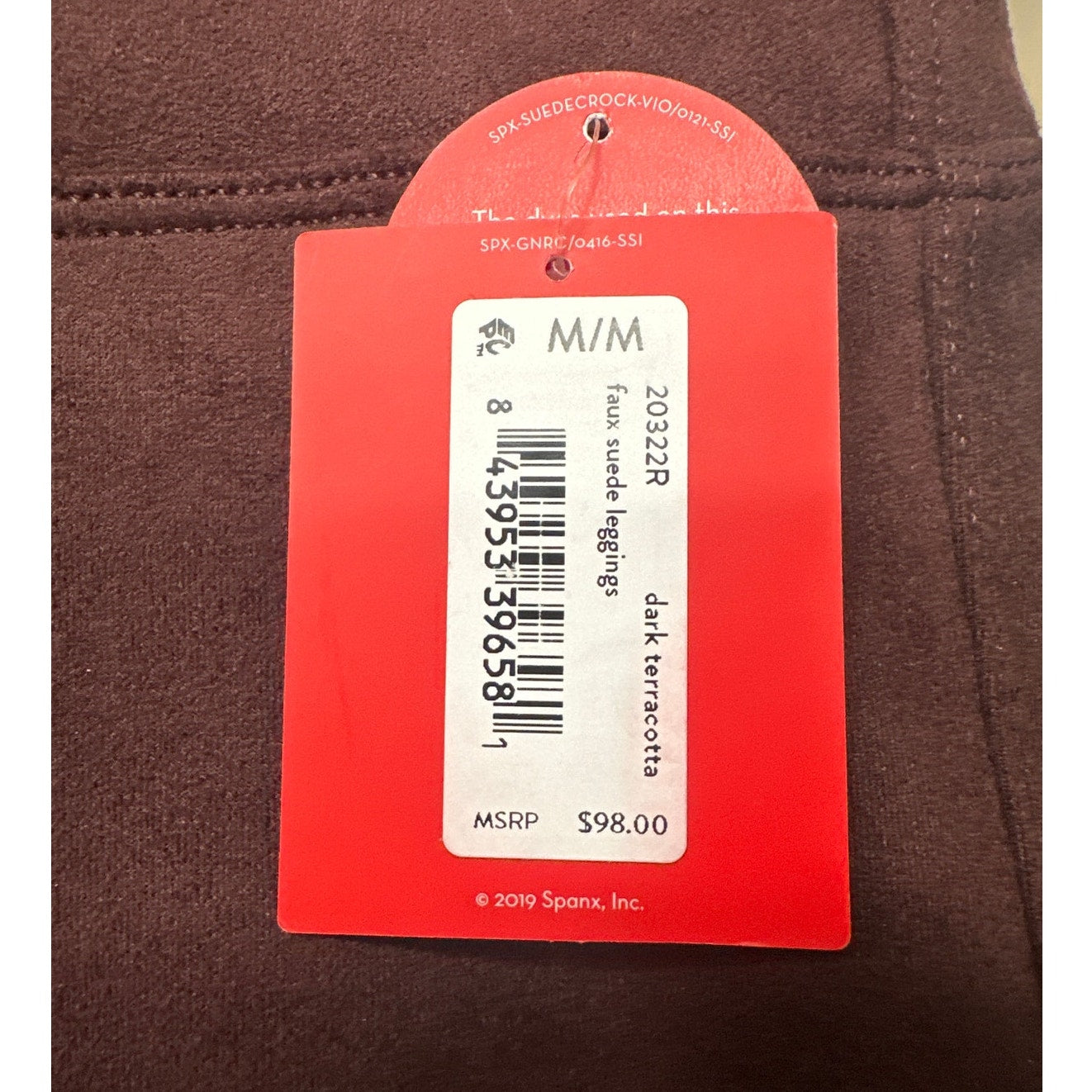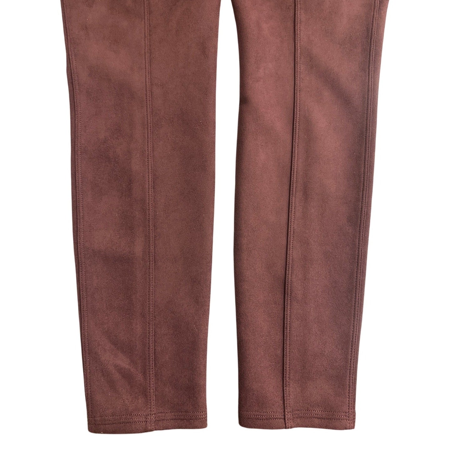 Soft and stylish faux suede leggings from Spanx in a rich merlot color. Features a high-rise, pull-on style with flattering seams. Brand new with tags.