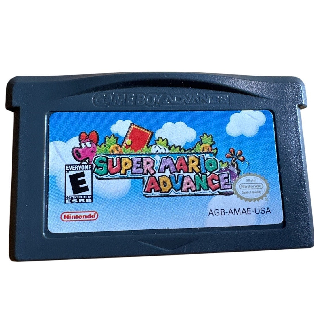 Nintendo Game Boy Advance Super Mario Advance game cartridge with original instruction booklet. Authentic GBA release. Cartridge tested and working. Label and shell in good preowned condition. Manual included as shown. Classic Mario platformer perfect for collectors or retro gamers.