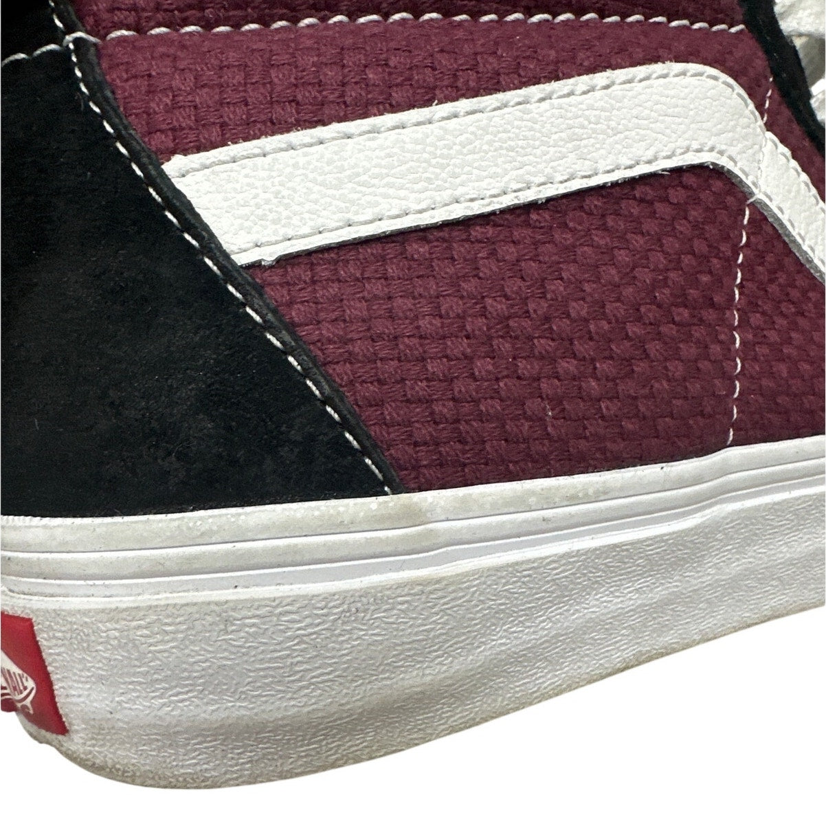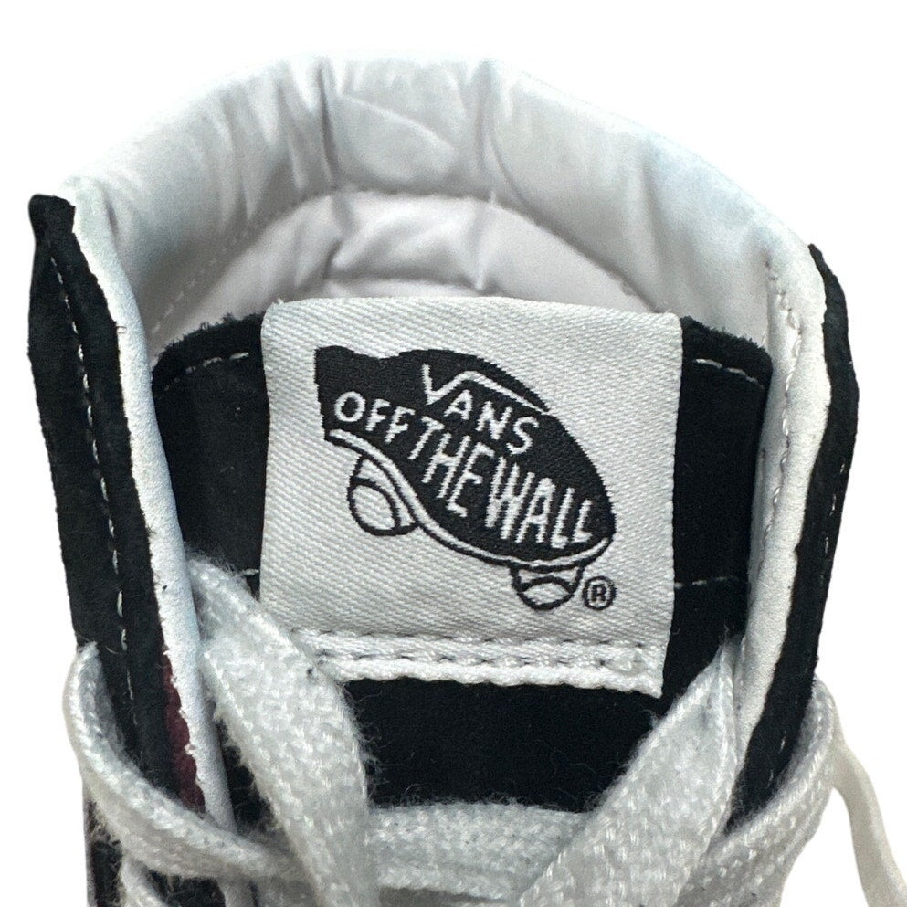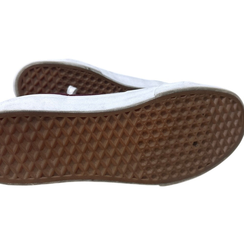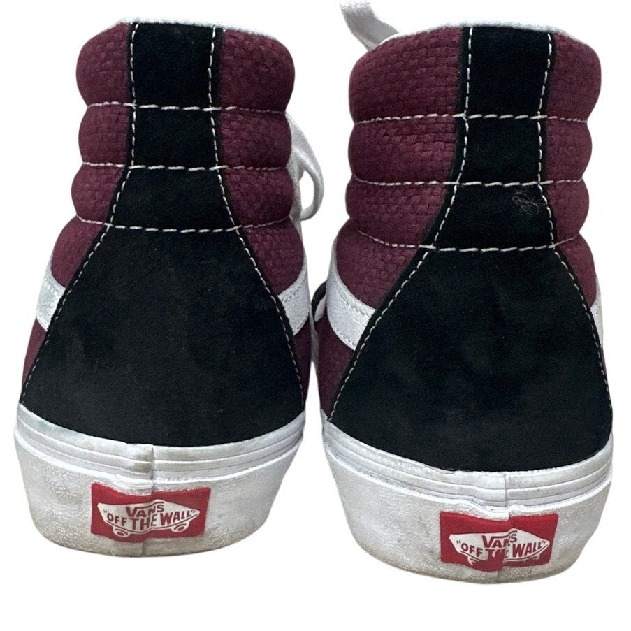 Vans Off The Wall skateboard shoes in a stylish burgunday and black colorway. These high-top shoes are in very good condition and ready for your next skate session or casual outing! Size 9. Get ready to turn heads with these awesome Vans! Small smudge marks on outer sole, some discoloration on inner heel. Overall excellent condition, only worn a couple of times.