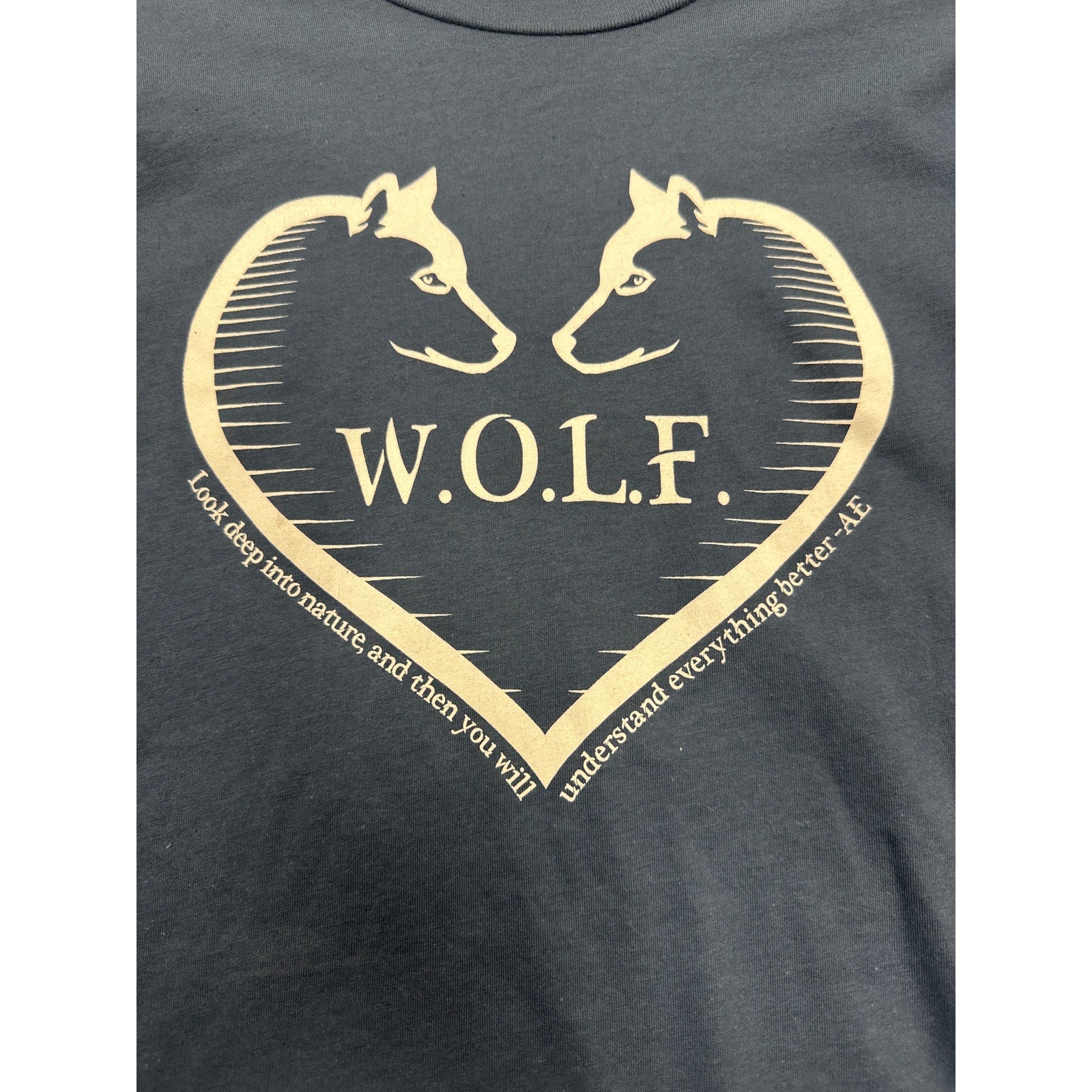 -Like new condition t-shirt. For love of all things W.o.l.f design. Measures 20” pit to pit / 30” long. Size L.