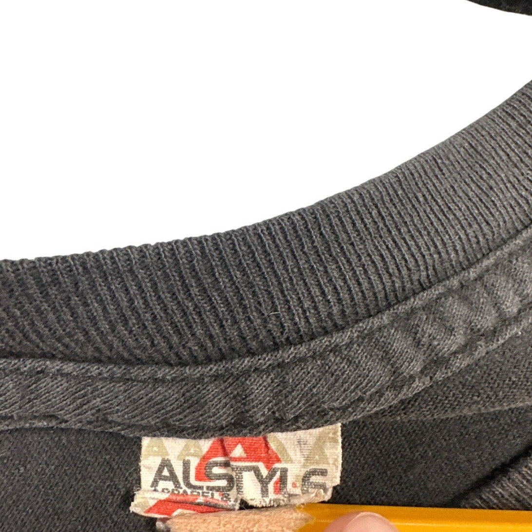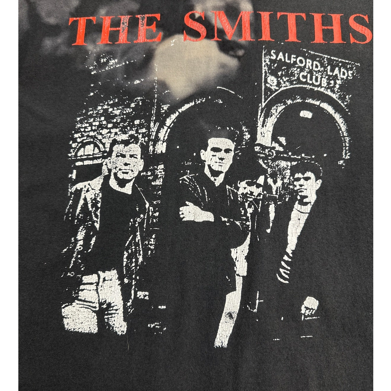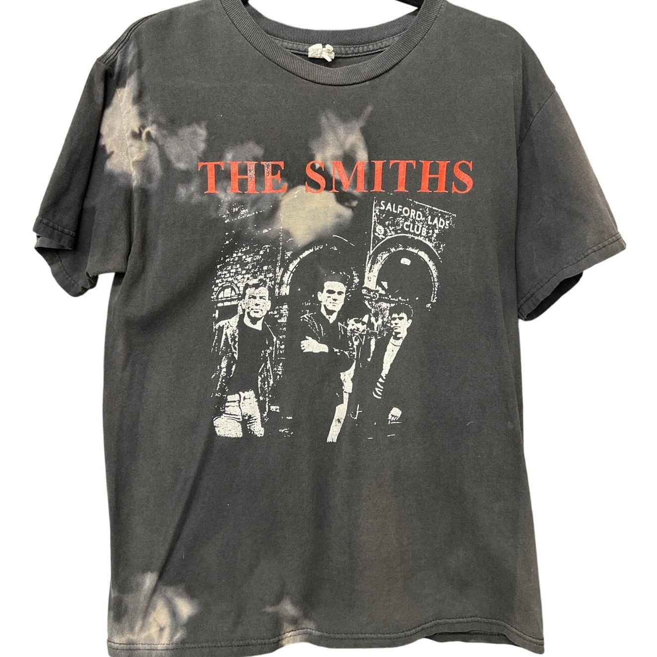 - Early 2000s The Smiths band tee printed on a soft, worn-in Alstyle shirt. Features iconic photo of the band at the Salford Lads’ Club. Custom bleach dyeing gives it a one-of-a-kind look Tag is partially worn, but shirt fits like a Men's Small — see measurements below. Small notch (smaller than a pencil tip) on the collar from age (see photo). Print is peeling consistent with age, still lots of life left!