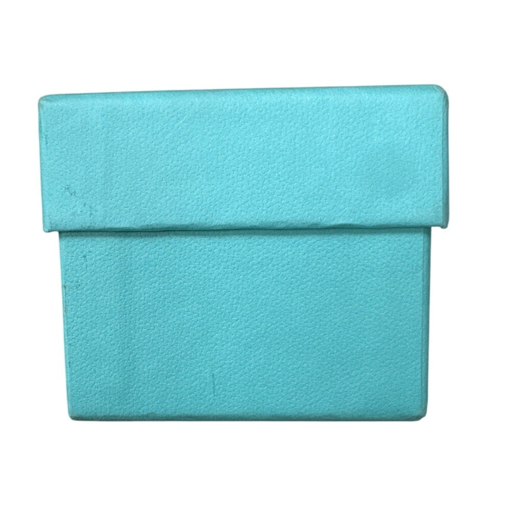 Authentic Tiffany & Co. eyeglasses (Made in Italy) in black front with Tiffany Blue arms + matching case, box & certificate included. Frame shows slight yellowing at each end; exterior of case has surface scratches; cloth is in good condition; box has light age-yellowing/marking; certificate has some handling wear but intact. Glasses still stylish and original.