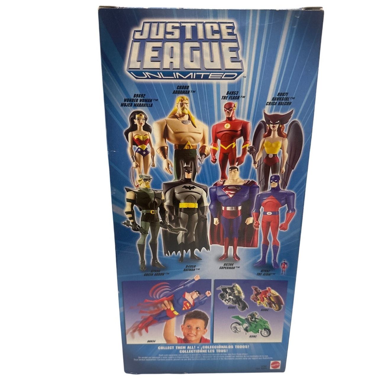 -Justice League Unlimited “The Atom" 10” tall. Made by Mattel. Excellent new condition. Outer box has some wear on corners, a small rip on plastic. See pictures.