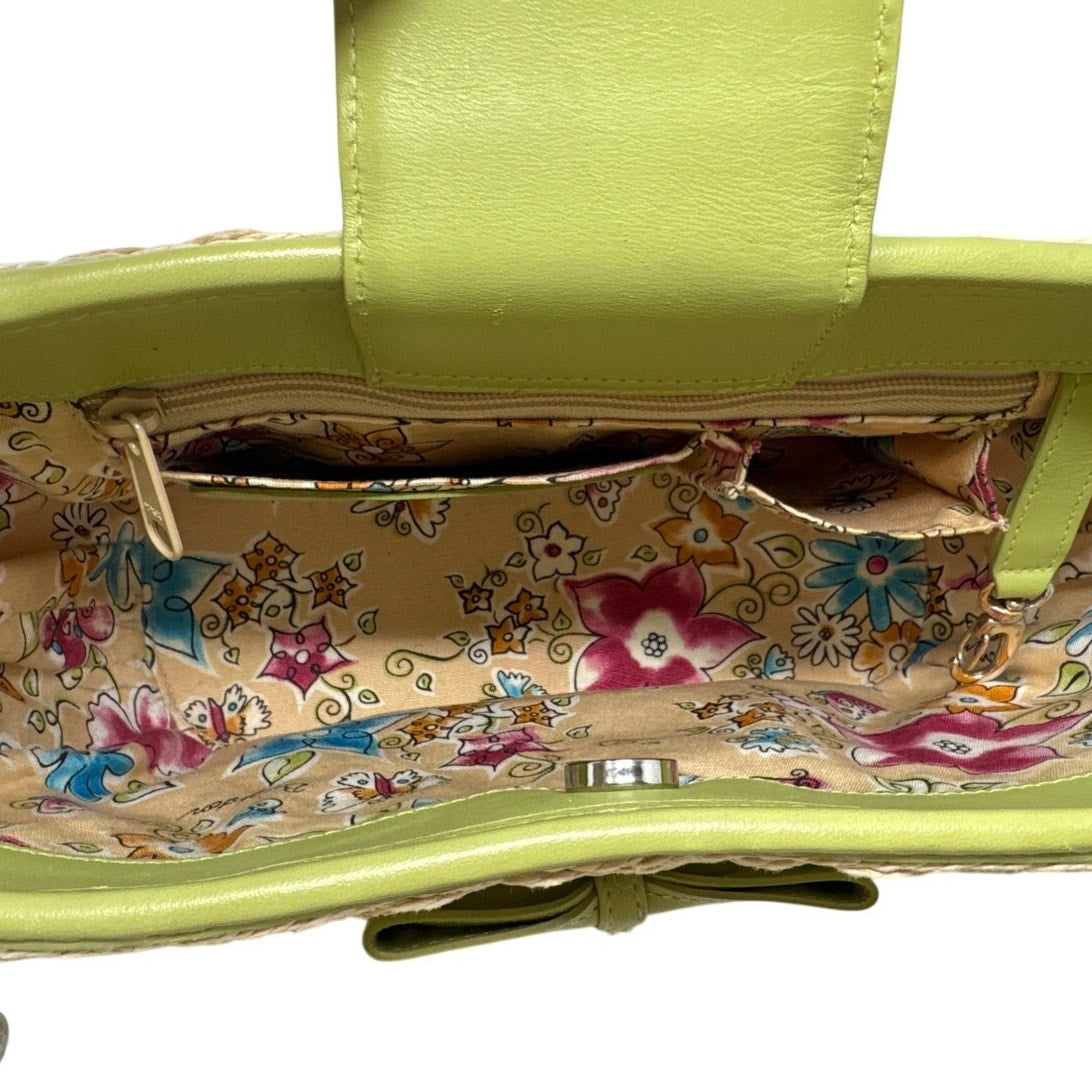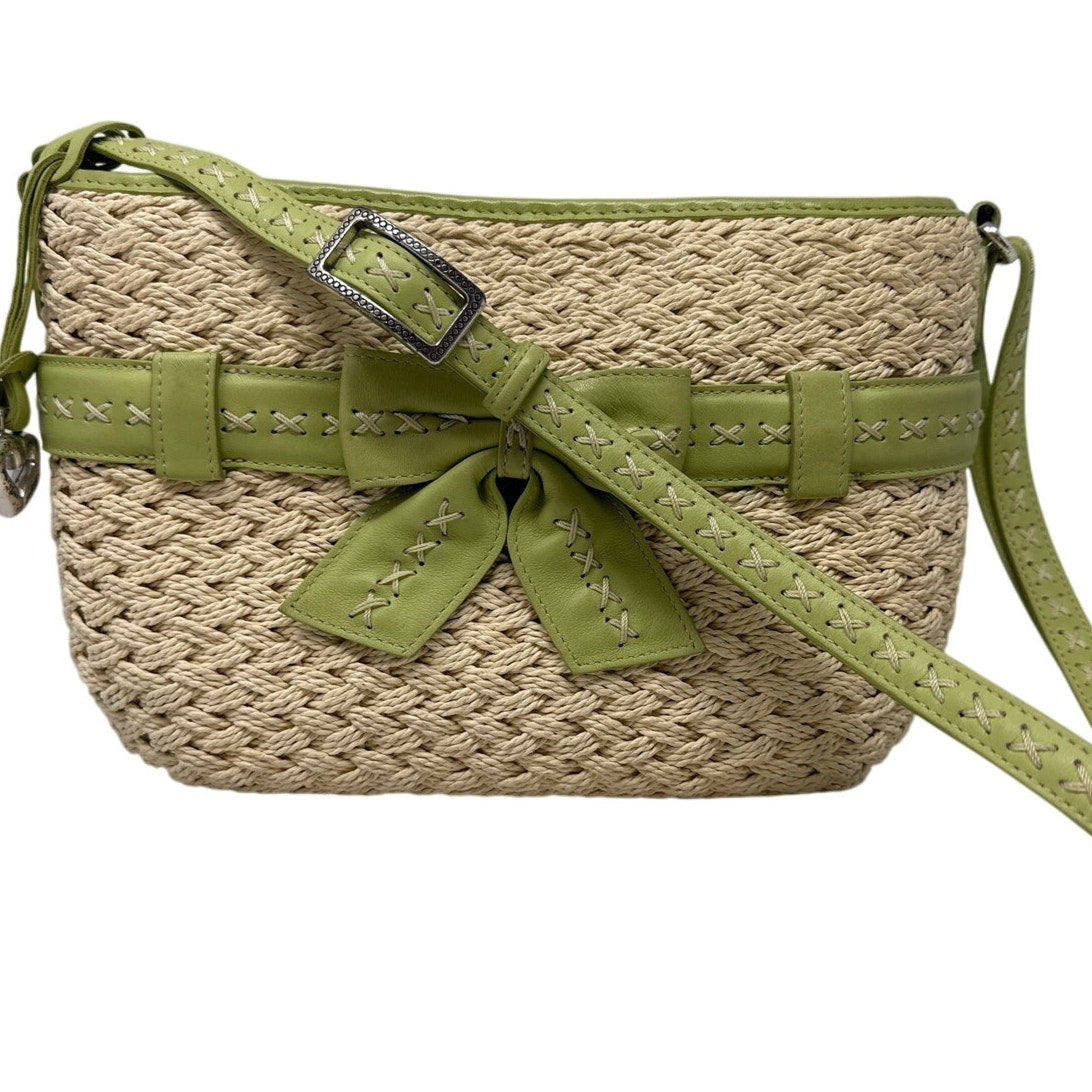 Preowned Brighton woven straw crossbody in lime green & cream. Silver heart charm, adjustable strap, magnetic flap. Good condition overall; wear on hardware and leather flap (see photos). Clean interior. Comes with original box. Cute spring/summer bag!