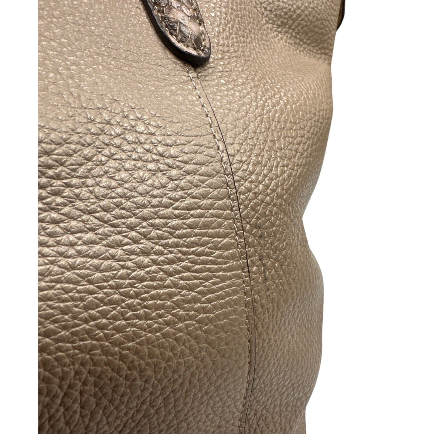 - Coach Ava Tote - Style F38878. Metallic refined pebble leather with snake-embossed leather details. Inside zip, cell phone and multifunction pockets. Zip-top closure, fabric lining. Handles with 9" drop. Outside slip pocket. 12 1/2" (L) x 9 3/4" (H) x 5" (W). Great like new condition. 2 minor scuff marks shown in pictures.