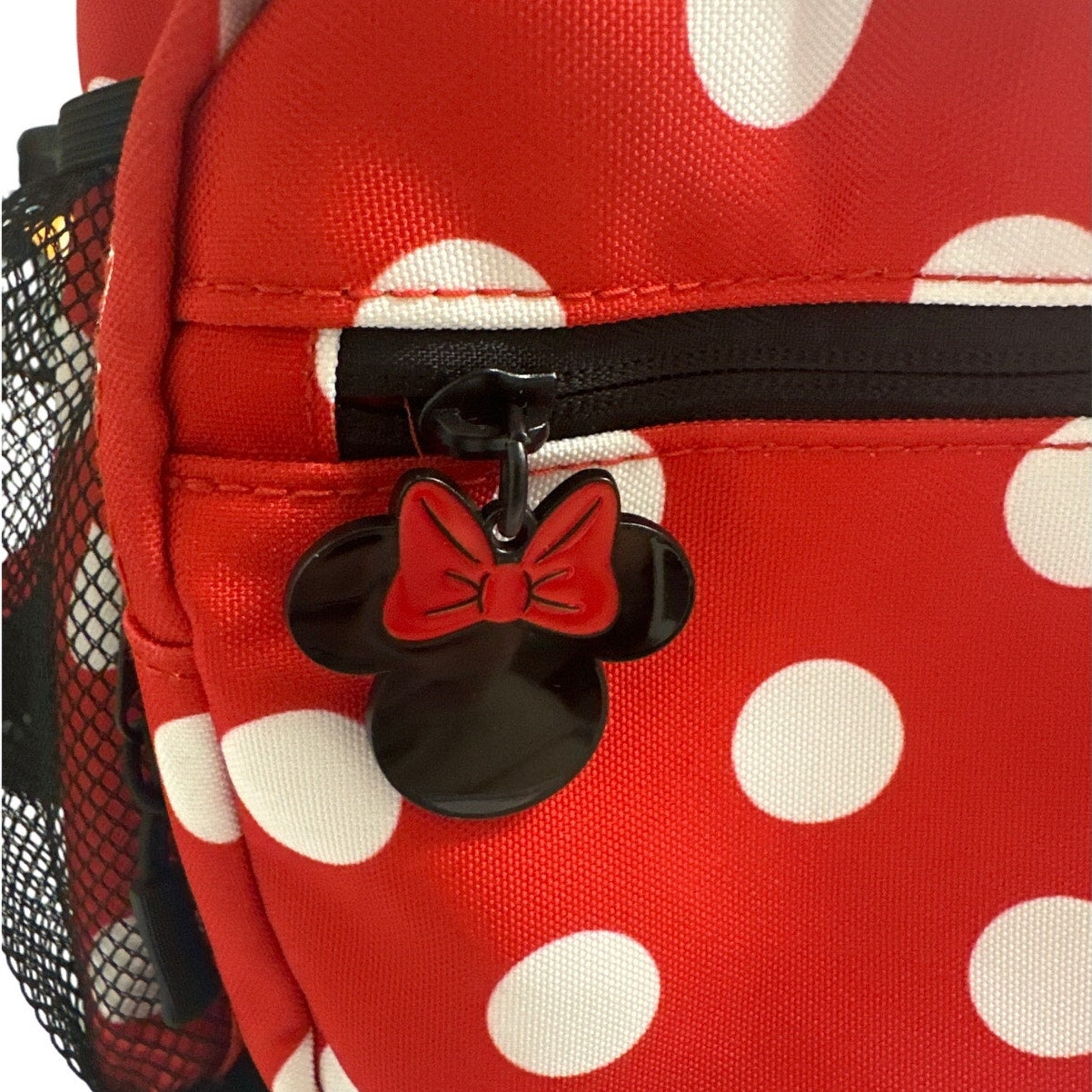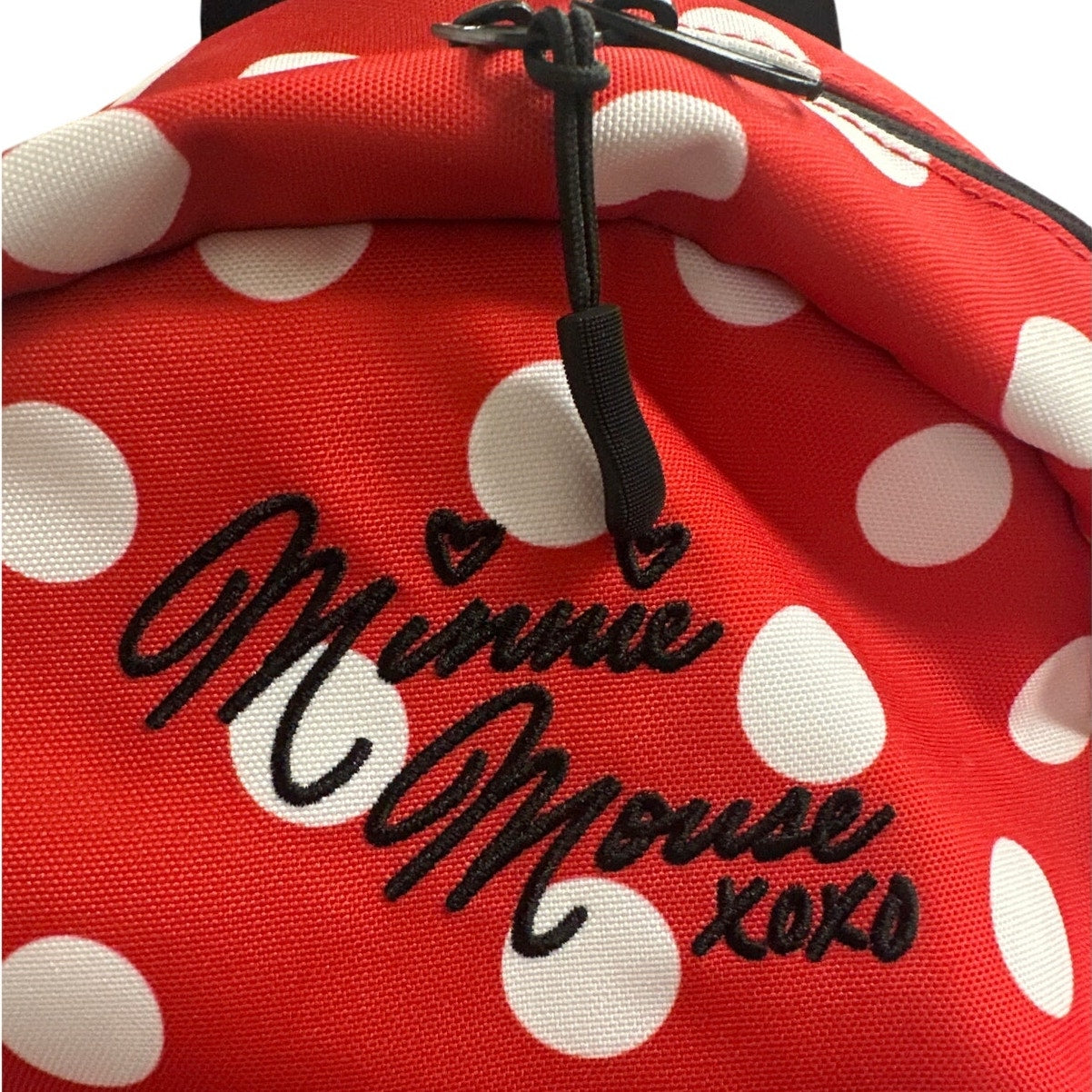 Bring a bit of Disney magic to your everyday with this adorable Minnie Mouse mini backpack! Crafted in red with bold white polka dots, it features “Minnie Mouse xoxo” text, a front zip pocket, mesh side pockets, and adjustable straps—perfect for casual outings, park days, or just adding fun flair to your outfit.