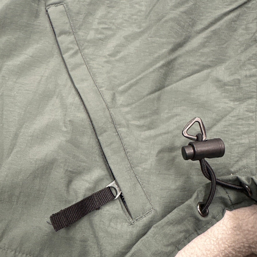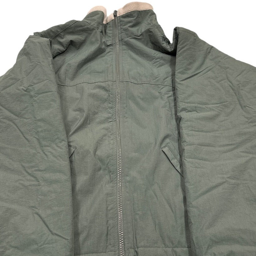 Zip up with zippered pockets. Water resistant shell with warm fleece lining.
