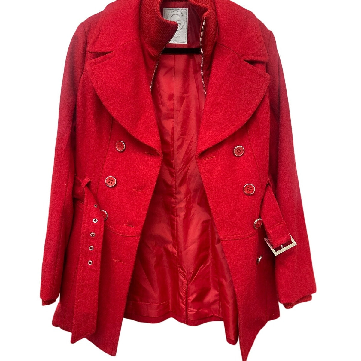 -G by Guess Coat Red size XL. Preowned excellent condition, belted. Zippers work. Measures 20” pit to pit, 28” long and 25” shoulder to cuff.