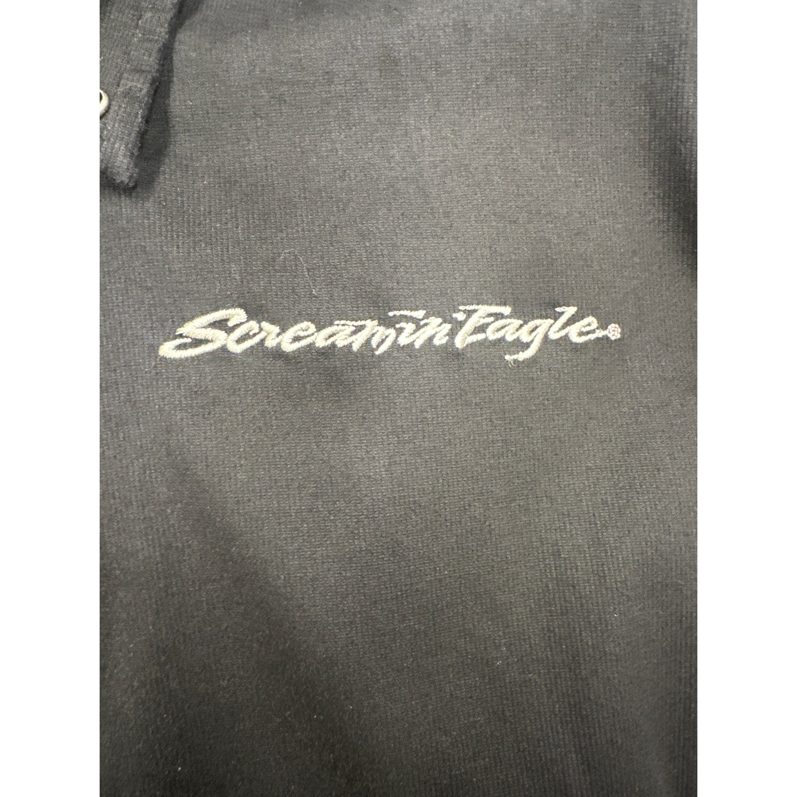 -Harley Davidson women’s long sleeve shirt. Button up with screamin eagle logo in back and lettering in front on left side on chest. Measures 20.5” pit to pit and 24” long. Excellent preowned condition.