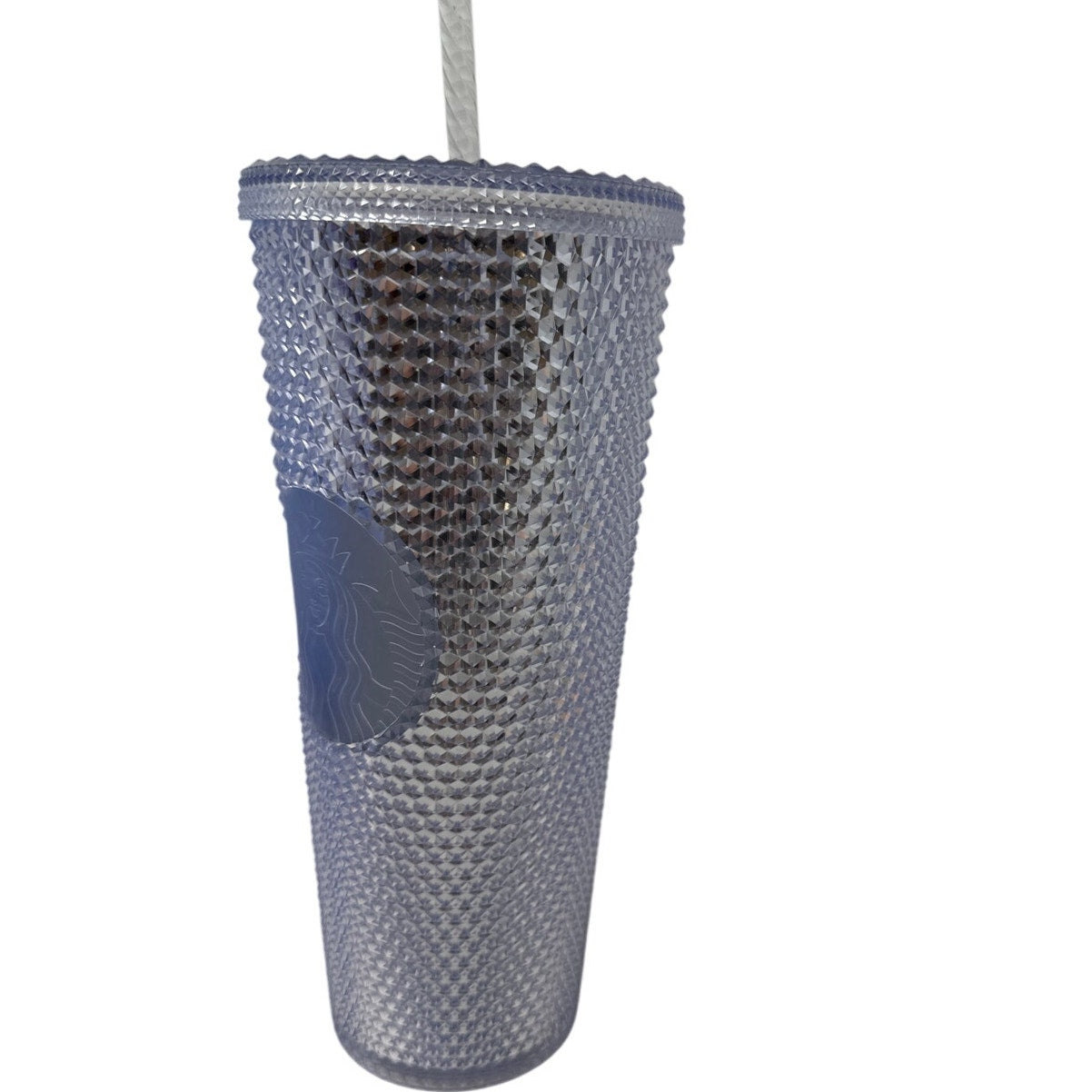 This Starbucks silver studded tumbler is in excellent condition! The outside looks brand new. There are some very faint marks inside the rim, but they are barely noticeable. Grab this beauty before it's gone!