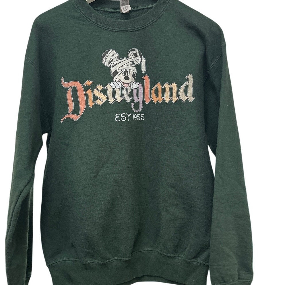 Get ready for spooky season with this adorable Disneyland Halloween Mickey Mouse Mummy Sweatshirt! This sweatshirt is in very good condition, with only slight peeling due to age, adding to its vintage charm. This medium-sized sweatshirt is perfect for adding a touch of Disney magic to your Halloween wardrobe. Designs on front and back. Don't miss out on this unique and festive piece!