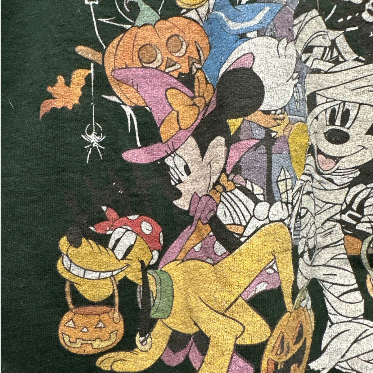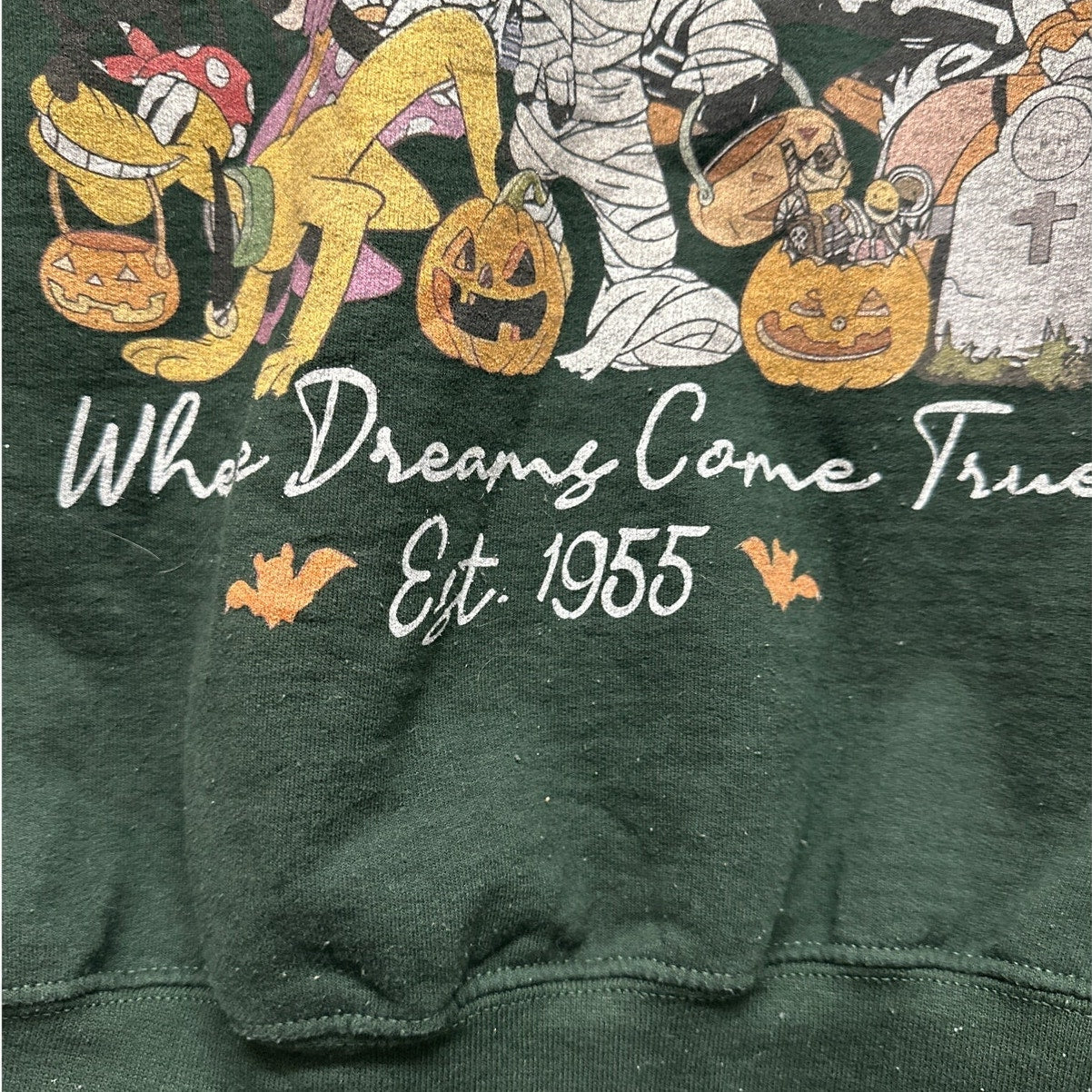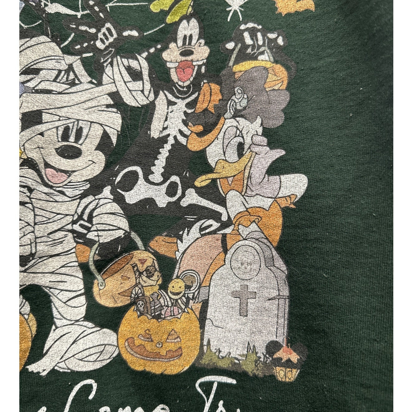 Get ready for spooky season with this adorable Disneyland Halloween Mickey Mouse Mummy Sweatshirt! This sweatshirt is in very good condition, with only slight peeling due to age, adding to its vintage charm. This medium-sized sweatshirt is perfect for adding a touch of Disney magic to your Halloween wardrobe. Designs on front and back. Don't miss out on this unique and festive piece!