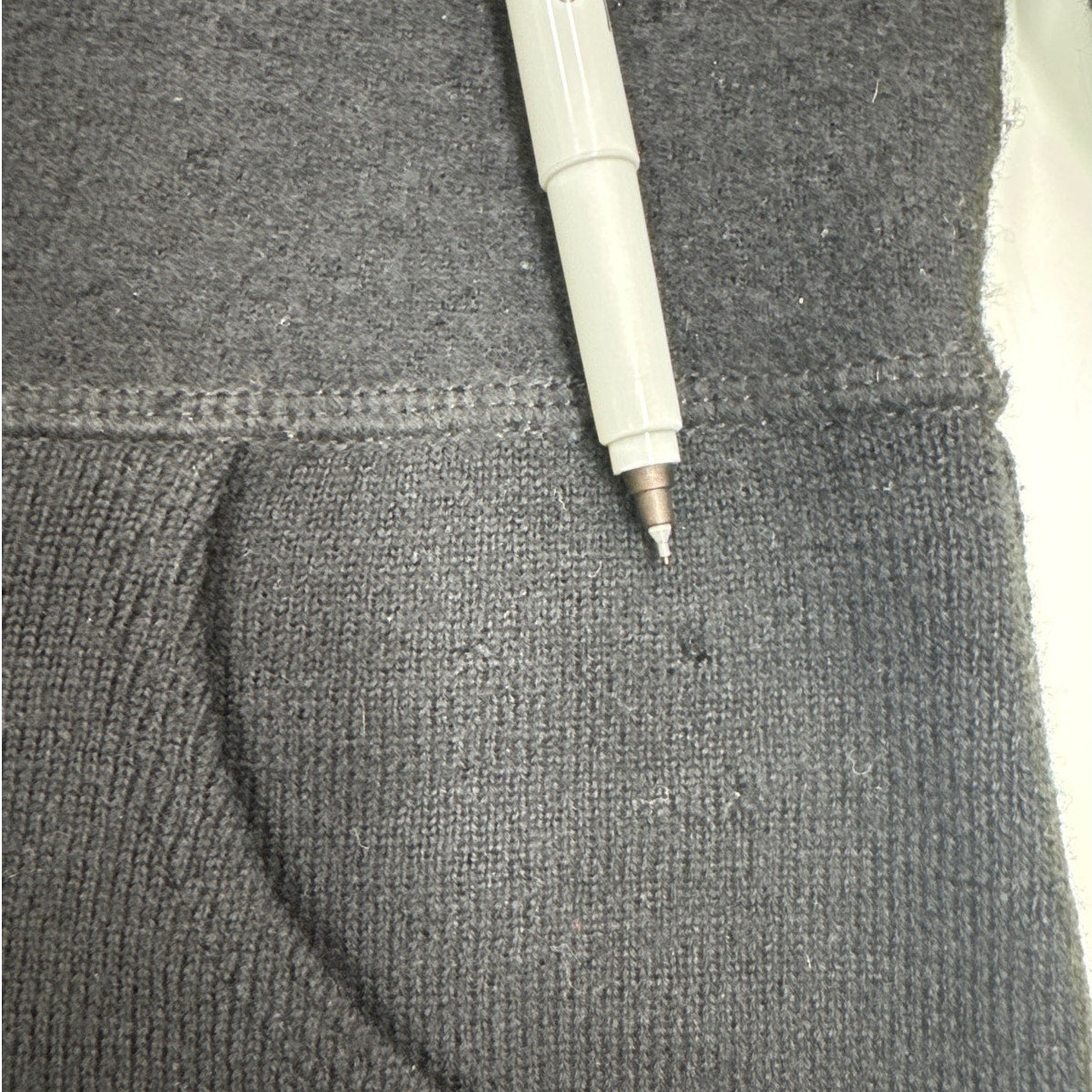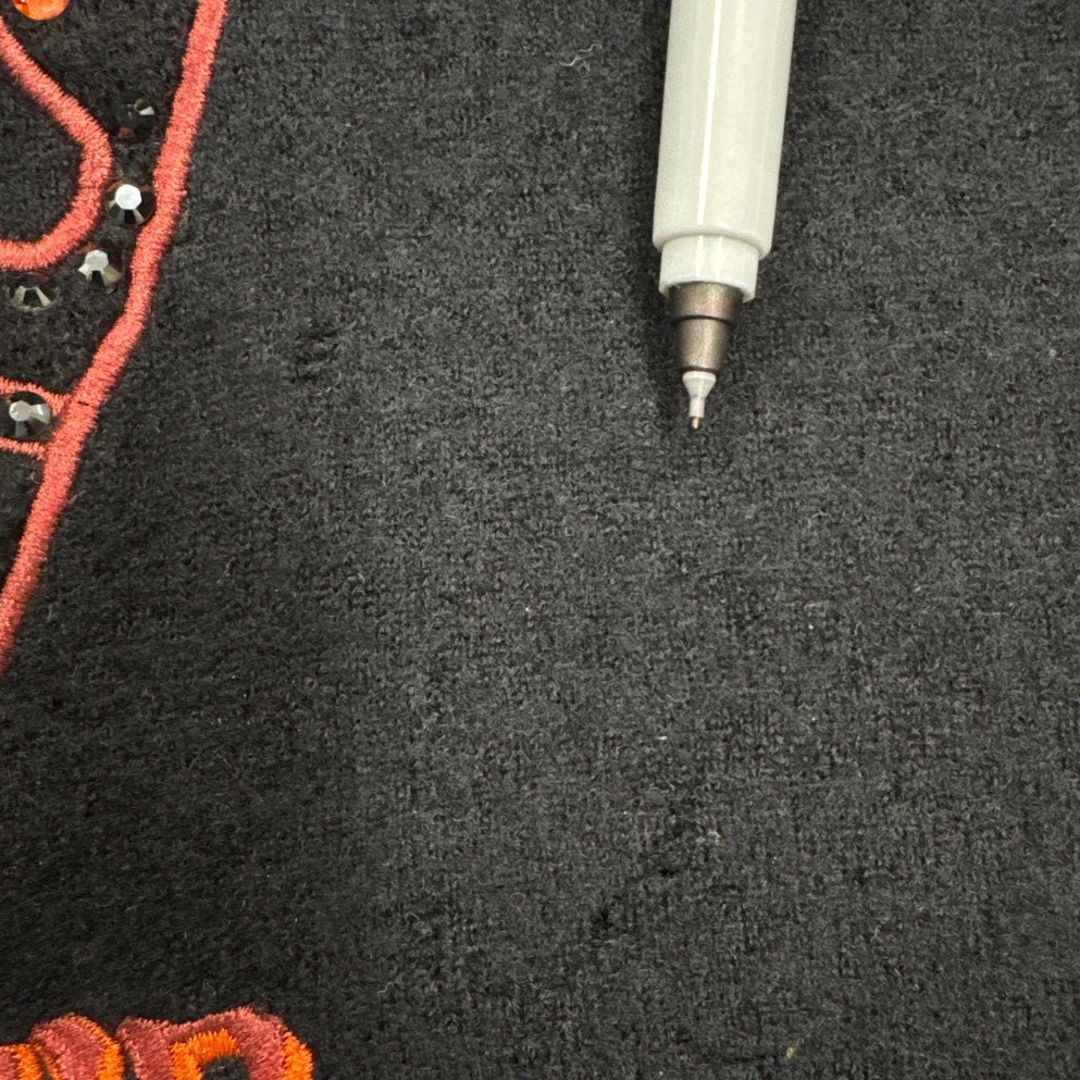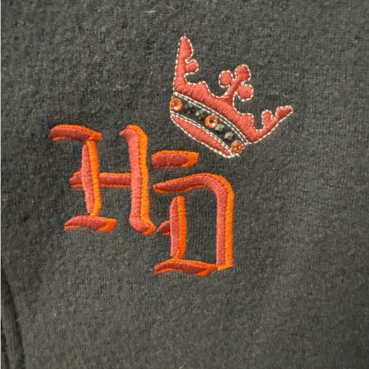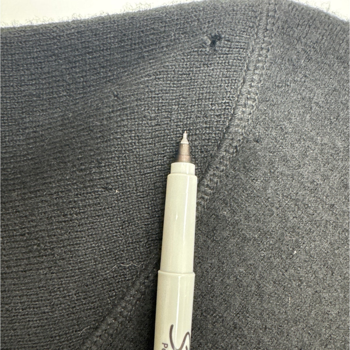 Harley Davidson Cycle Queen black wool sweater (women’s medium). Pit to pit 17”, length 23”. Pre-owned with small holes throughout—mostly on sleeve ends & bottom front, plus some inside collar wear. True vintage wool character.