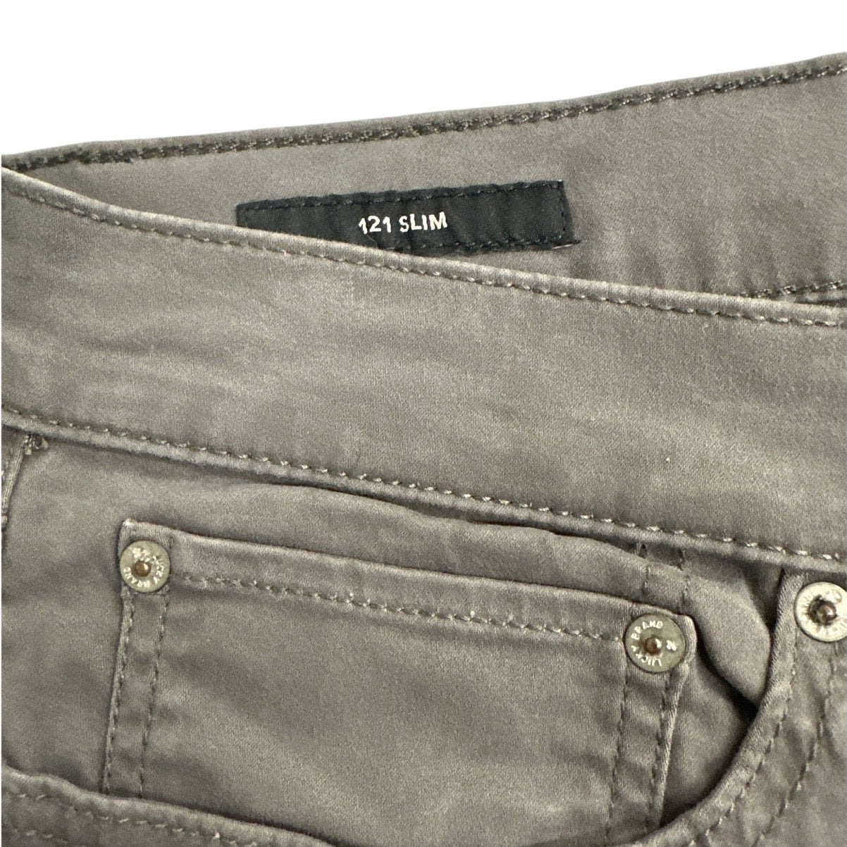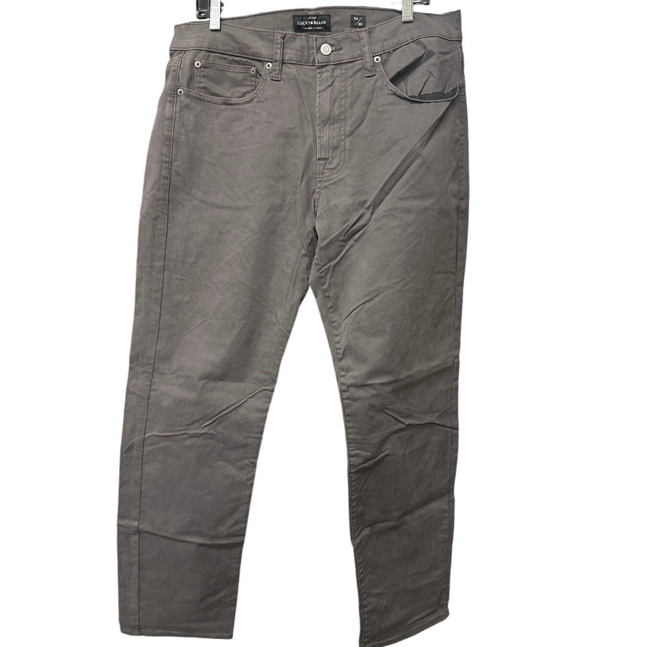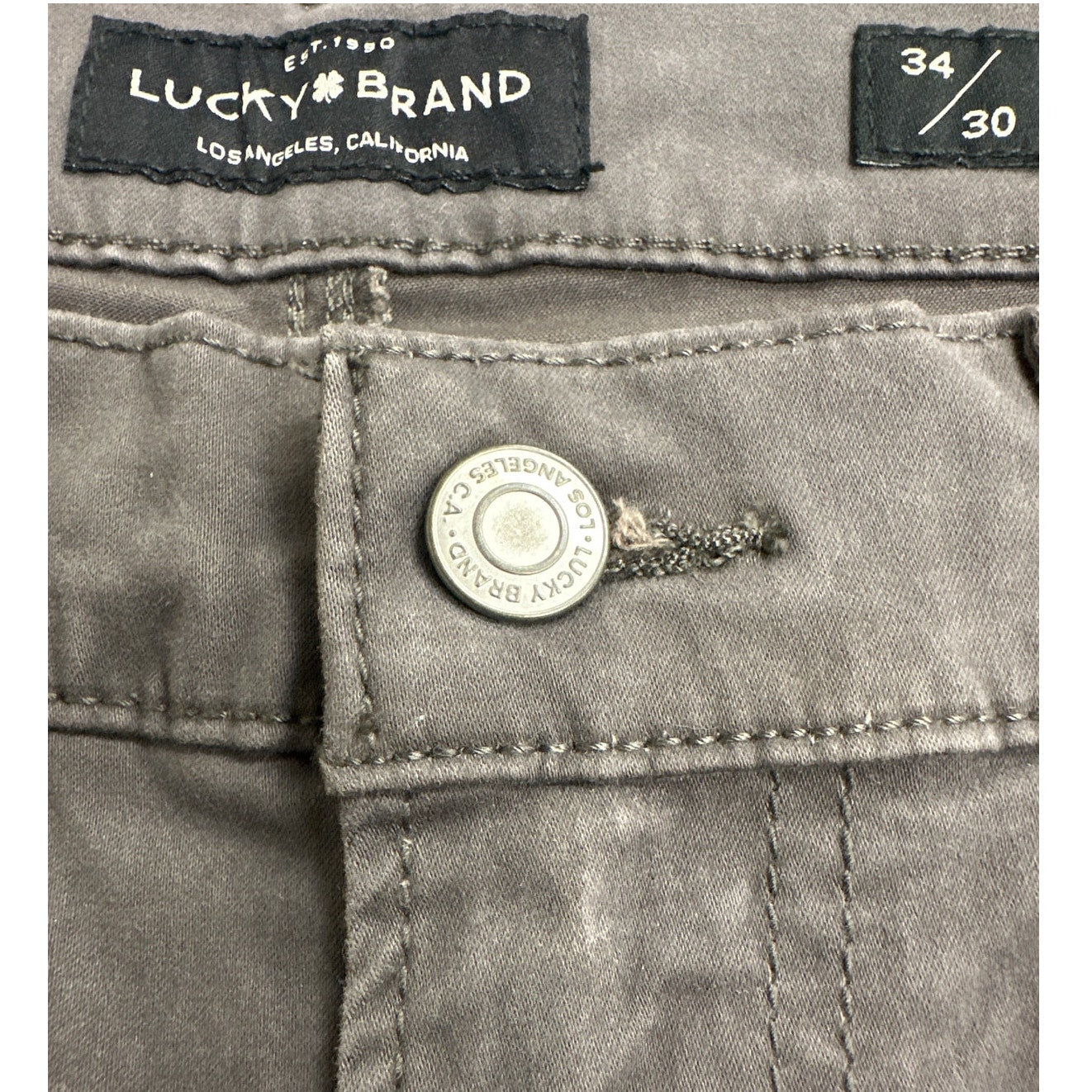Pre-owned Lucky Brand 121 Slim men’s pants in a versatile gray color, size 34x30. Comfortable cotton-blend fabric with a modern slim fit. Excellent everyday wear with quality Lucky Brand craftsmanship. Gently worn, no flaws.